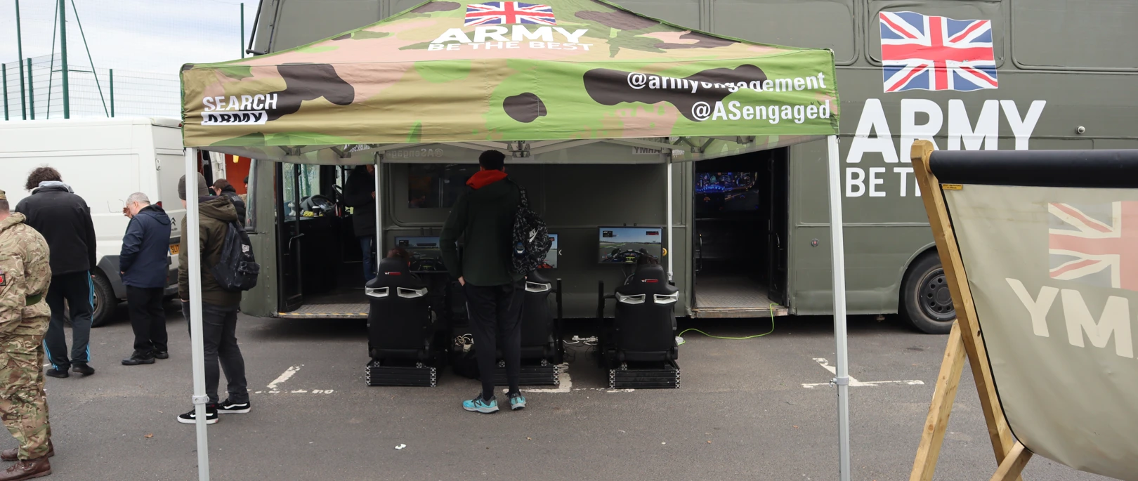 Positioned in the car park directly outside the campus alongside a virtual racing rig and some prepared team building activities, the eBus offered Ayrshire College students the chance to play video games and hear from Army officials about the use of digital technology within defence.